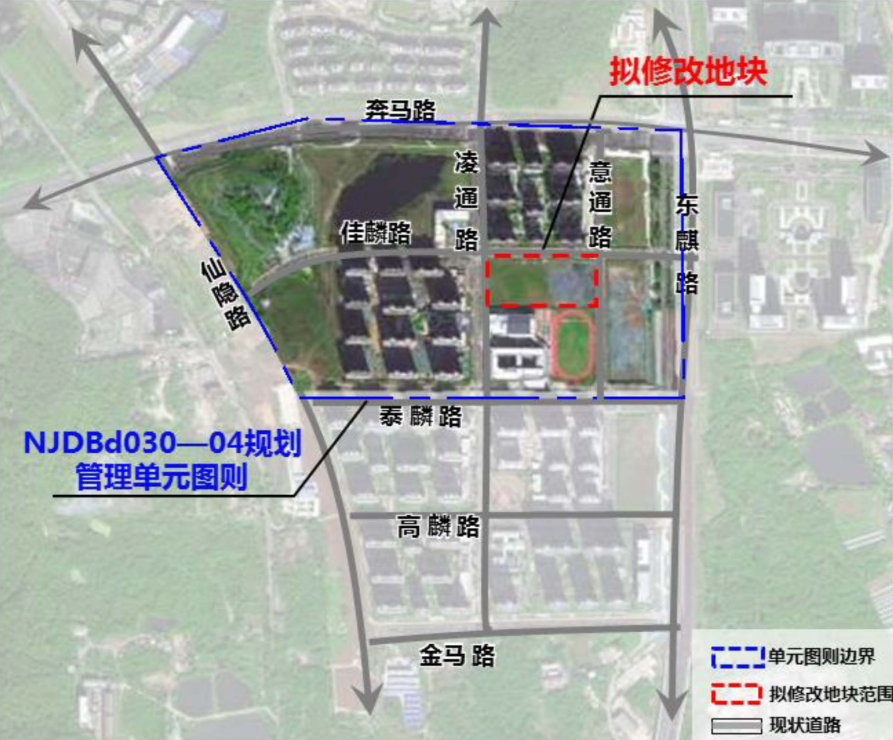 区位:NJDBd030-04 规划管理单元图则位于江宁区仙林副城麒麟片区,东至东麒路西至仙隐路、南至泰麟路、北至奔马路,用地面积约为 38.73 公顷。