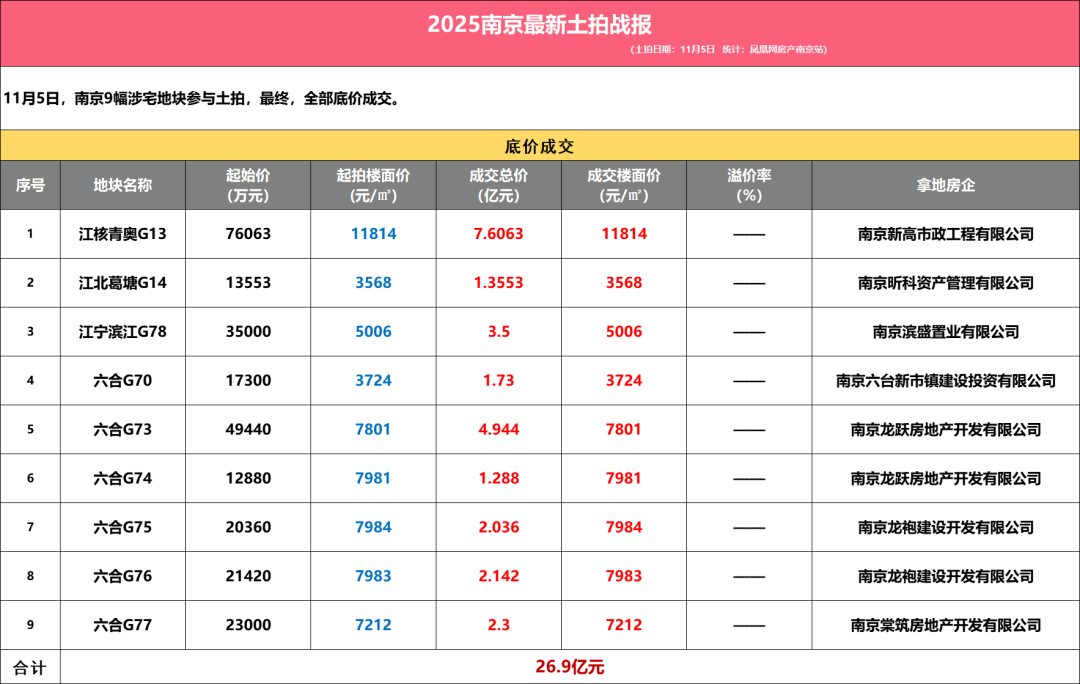 最终,9宗地块均底价成交,总成交金额26.9亿元。