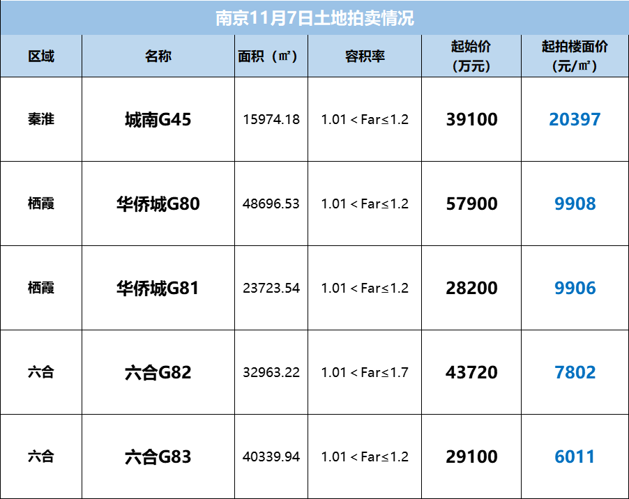 接下来,11月7日,南京还有5块住宅用地出让。涉及老城南秦虹片区、栖霞、六合。